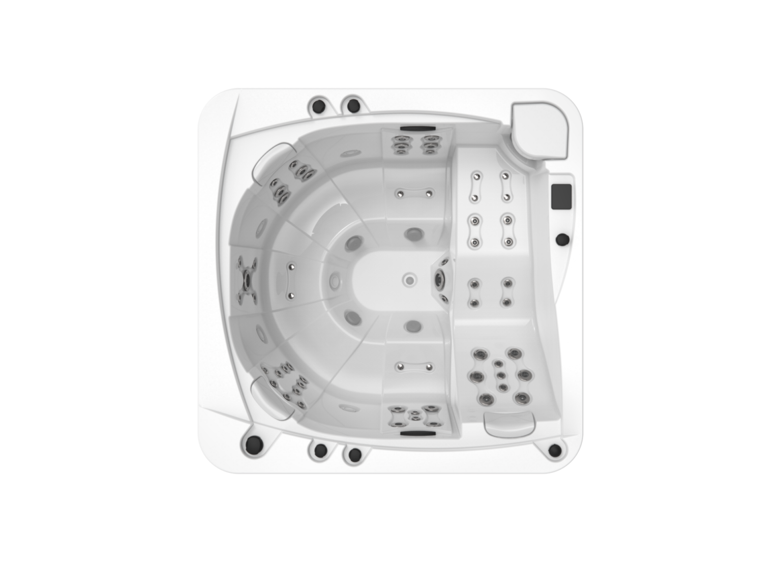 43 punti di massaggio ripartiti in 31 getti d’acqua e 12 bocchette d’aria,